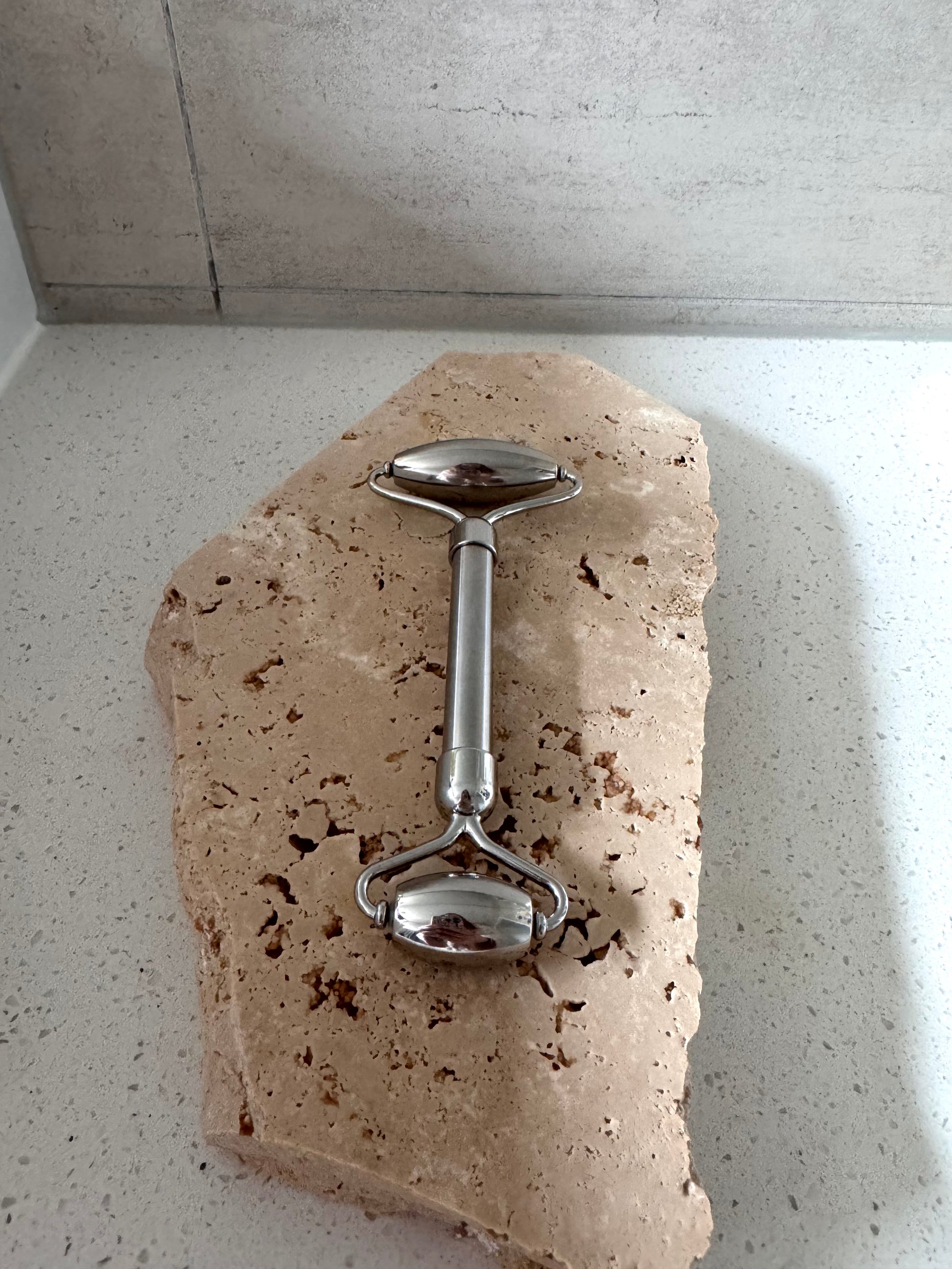 The stainless steel facial roller is crafted from premium stainless steel, offering a cooling and refreshing experience. Unlike traditional stone rollers, stainless steel remains naturally cool to the touch and is non-porous so it wont absorb your products, making it more hygienic and resistant to bacteria build-up.